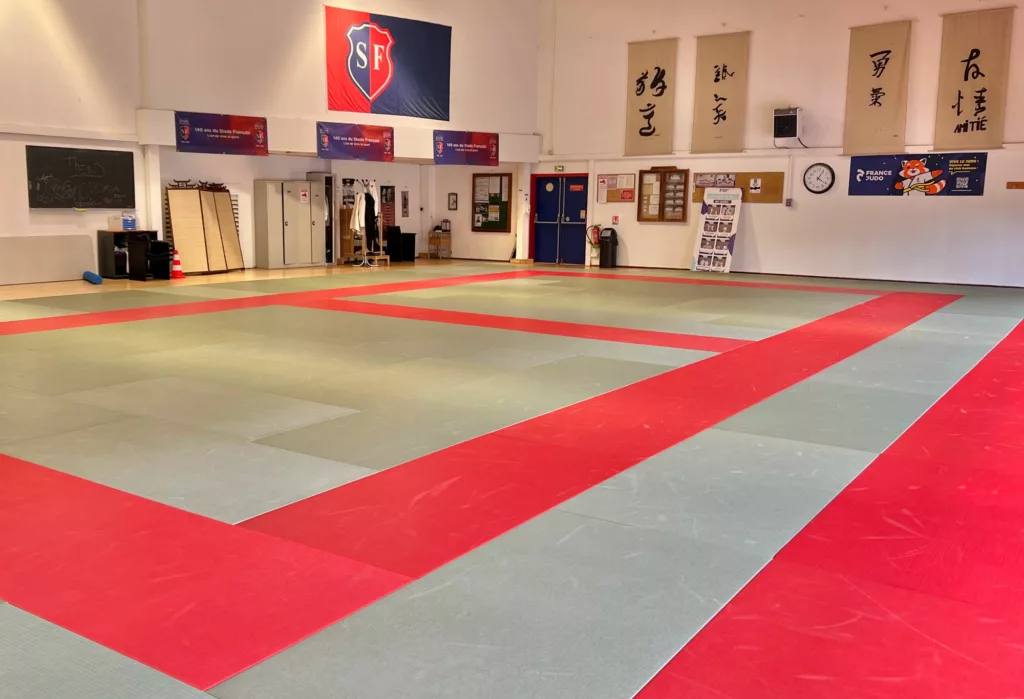 Nos cours ont lieu dans un lieu d’exception : le prestigieux Stade Français, à la Porte de Saint-Cloud ! Nous avons la chance de pratiquer dans l’un des plus beaux dojos de Paris, un espace de 300 m² entièrement dédié aux arts martiaux, situé aux portes du 16ème arrondissement, à la frontière de Boulogne-Billancourt, à deux pas du Parc des Princes. Un cadre unique pour repousser vos limites et vivre pleinement l’expérience Krav Maga !
